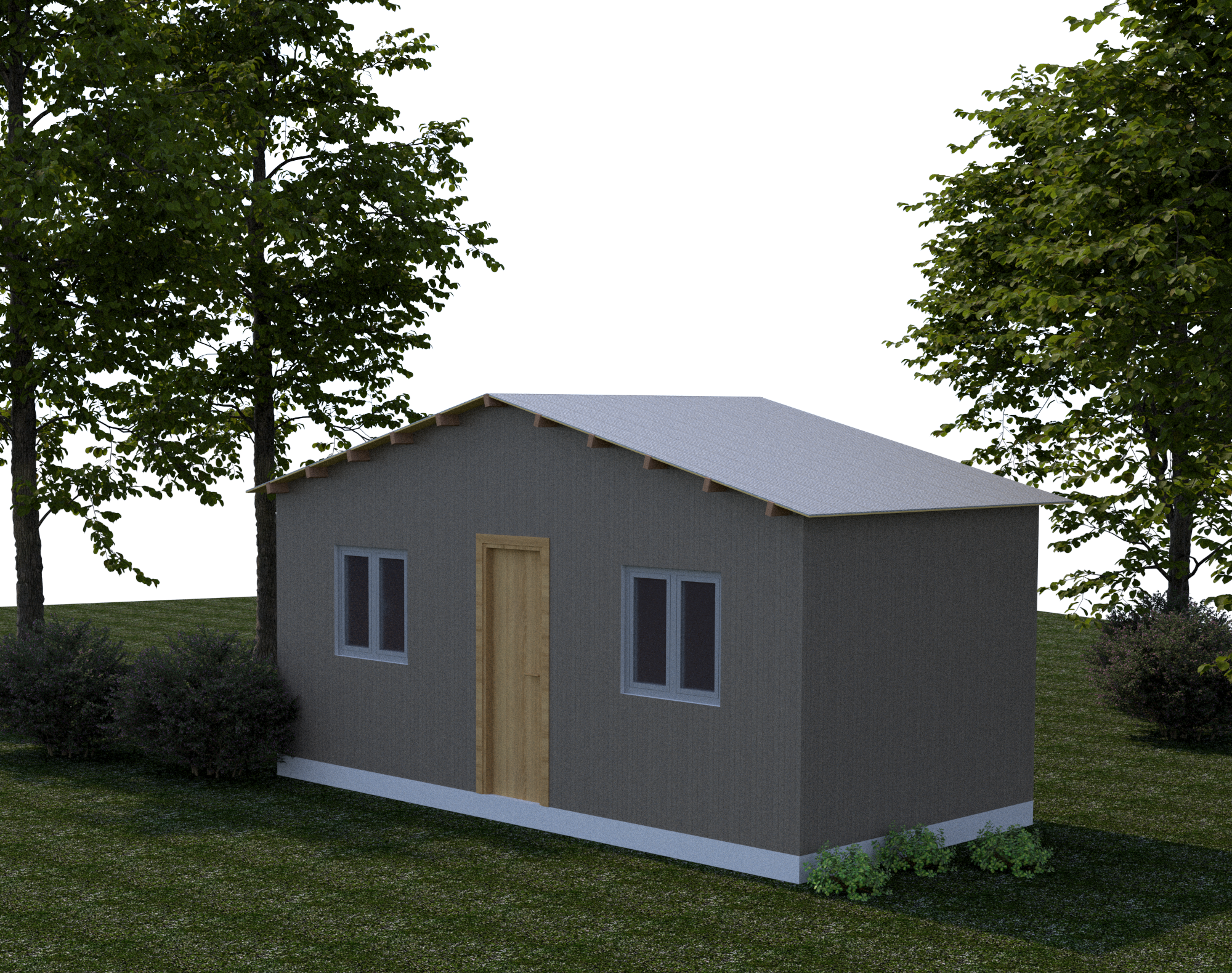 VIVIENDA DE EMERGENCIA SMARTPANEL EXTERIOR OSB STANDAR INTERIOR CAIDA 2 AGUAS 6×3 mts. Planta Libre